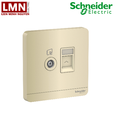 Bộ ổ cắm ti vi và bộ ổ cắm mạng cat5e màu vàng ánh kim E8332TVRJS5_WG_G19 AvatarON Schneider